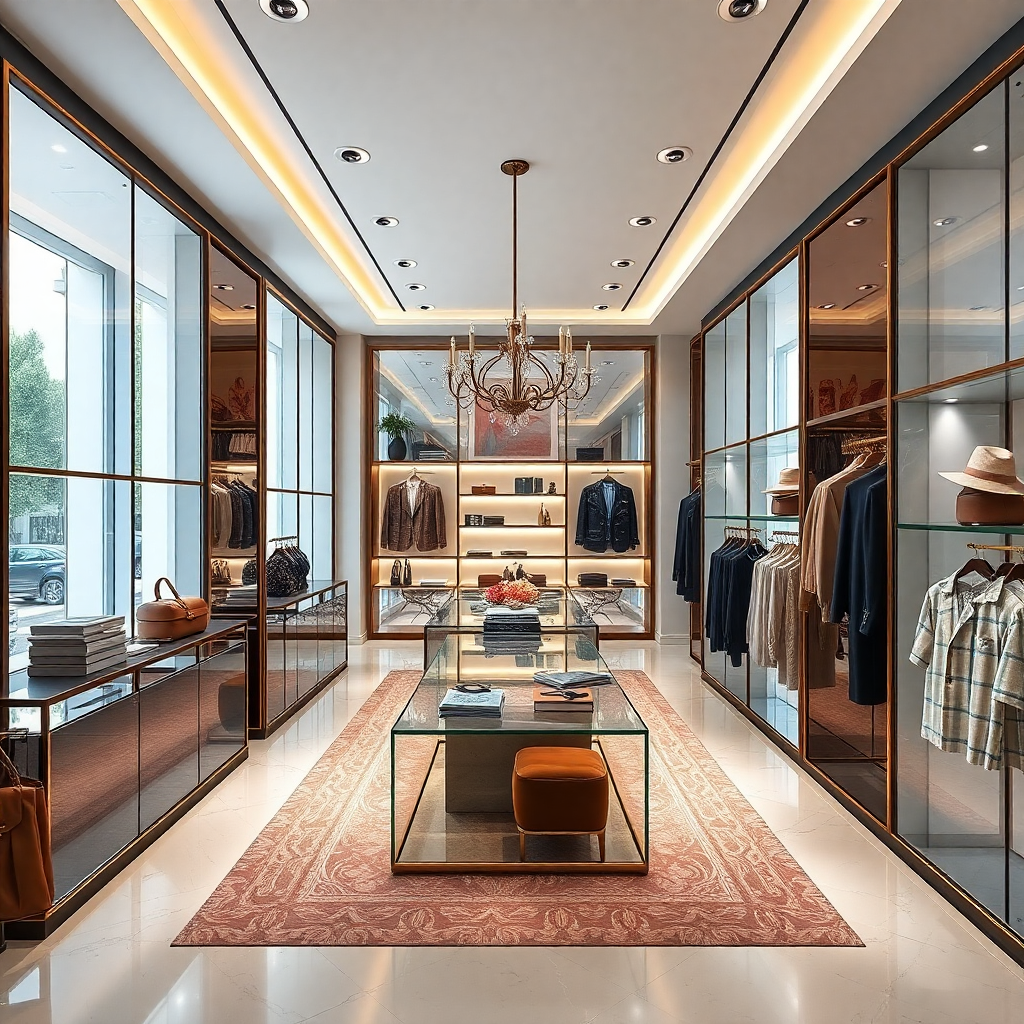 Complete transformation of a high-end fashion boutique featuring custom fixtures, premium lighting, and bespoke display …